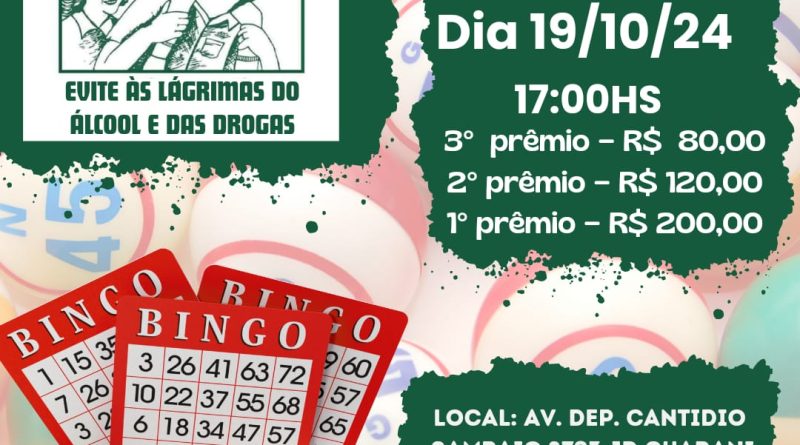 Read MoreA Comissão Organizadora do 380 Encontro Antialcoólico/Drogas, convida todos os recuperandos, familiares e amigos para o Bingo Beneficente que será